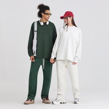 Groothandel 100% Katoen 275gsm Heren Streetwear Oversized Lange Mouw T-Shirts Met Op Maat Bedrukt Logo Snel Droog Anti-uv