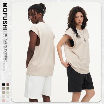 Custom 230G Heren Casual Mouwloos Vest T-Shirt High Street Fashion 100% Katoen Zware Losse Rand Oversized Effen Kleur Top